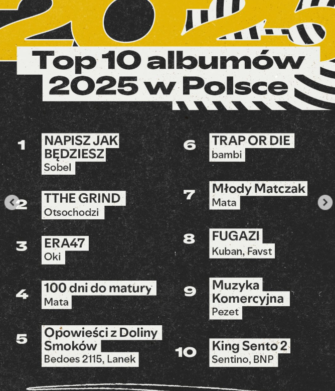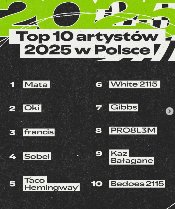W 2025 roku rap zdominował muzyczny krajobraz. Po kilku latach przerwy Mata wrócił na pierwsze miejsce listy najczęściej słuchanych artystów w kraju.