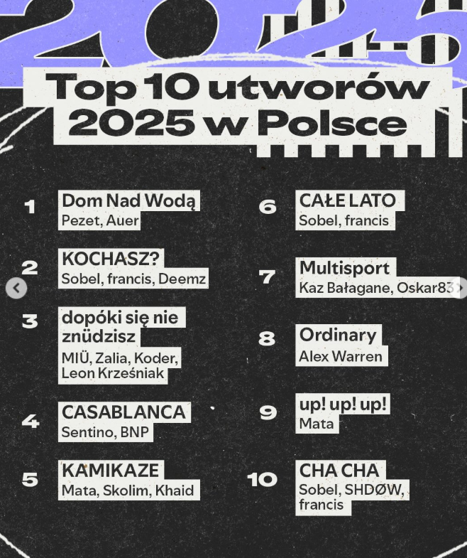 Polacy pokochali polską muzykę jeszcze mocniej niż w poprzednich latach. Najnowsze Spotify Wrapped udowadnia, że Polscy twórcy nie tylko trzymają się mocno, ale wręcz dominują. Oto kompletny przegląd tego, czego słuchano w Polsce i na świecie w 2025 roku.