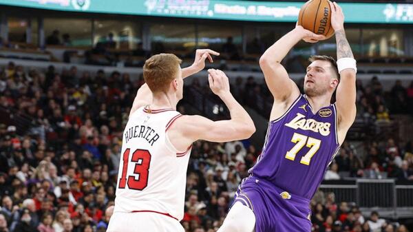 Los Angeles Lakers wygrali w Chicago 129:118, a kluczową postacią meczu był Luka Doncić, który zakończył spotkanie z dorobkiem 46 punktów, 11 asyst i siedmiu zbiórek. LeBron James dołożył 24 punkty, z czego aż 20 zdobył w pierwszej połowie. Z kolei bardzo dobre minuty z ławki dał Rui Hachimura, trafiając dziewięć z 11 rzutów i kończąc mecz z 23 punktami. Bulls długo utrzymywali się w grze, a po rzutach wolnych Nikoli Vucevicia w trzeciej kwarcie z 20-punktowej przewagi gości pozostał tylko jeden punkt różnicy, jednak Lakers szybko odzyskali kontrolę i ponownie odskoczyli. Doncić w samej trzeciej kwarcie zdobył 20 punktów, skutecznie odpowiadając na serię rzutów zza łuku gospodarzy, którzy trafili 18 trójek przy 49 próbach. Najskuteczniejszymi zawodnikami Chicago byli Coby White z 23 punktami oraz Ayo Dosunmu, który zdobył 20.