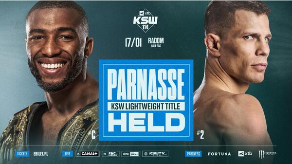 KSW potwierdziło walkę wieczoru gali numer 114. Salahdine Parnasse stanie do obrony pasa wagi lekkiej w pojedynku z Marcinem Heldem. Do francusko-polskiego starcia dojdzie 17 stycznia w Radomiu, po tym jak ich pierwsze zestawienie w maju zostało odwołane z powodu kontuzji pretendenta.