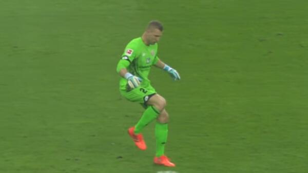 Robin Zentner bramkarz drużyny z Mainz w trakcie sobotniego meczu otrzymał podanie od obrońcy swojej drużyny. Niestety golkiper popełnił fatalny błąd i zamiast kopnąć w piłkę... kopnął w biała kropkę, która wyznacza miejsce z którego strzela się rzuty karne. Mimo, że bramka Mainz była zagrożona sytuację uratował jeden z defensorów drużyny. Jak po meczu wyznał sam Zentner - w kącie oka widział biały punkt i myślał, że to piłka. Mecz zakończył się wynikiem 1-1.