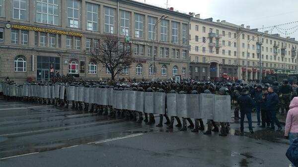 Rzeczniczka mińskiej milicji Natalla Hanusiewicz przekazała agencji Interfax-Zapad, że zatrzymano kilka osób. Dodała, że nie posiada informacji o strzałach ostrzegawczych. W rozmowie z agencją RIA Nowosti milicja potwierdziła z kolei oddanie wystrzałów w celu "niedopuszczenia do złamania prawa".