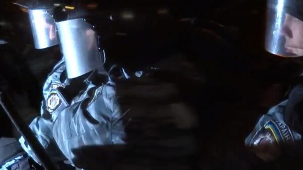 Manifestujący zdzierali z głów funkcjonariuszy kaski. Obie strony używały przeciwko sobie gazu łzawiącego. Protestującym udało się też chwilowo zablokować ulicę Hruszewskiego, znajdującą się przy siedzibie rządu i Radzie Najwyższej. Zostali jednak stamtąd usunięci przez milicję. Tłum wykrzykuje do stojących naprzeciwko milicjantów m.in. hasła "Precz z bandytą!" i "Ukraina to Europa!".