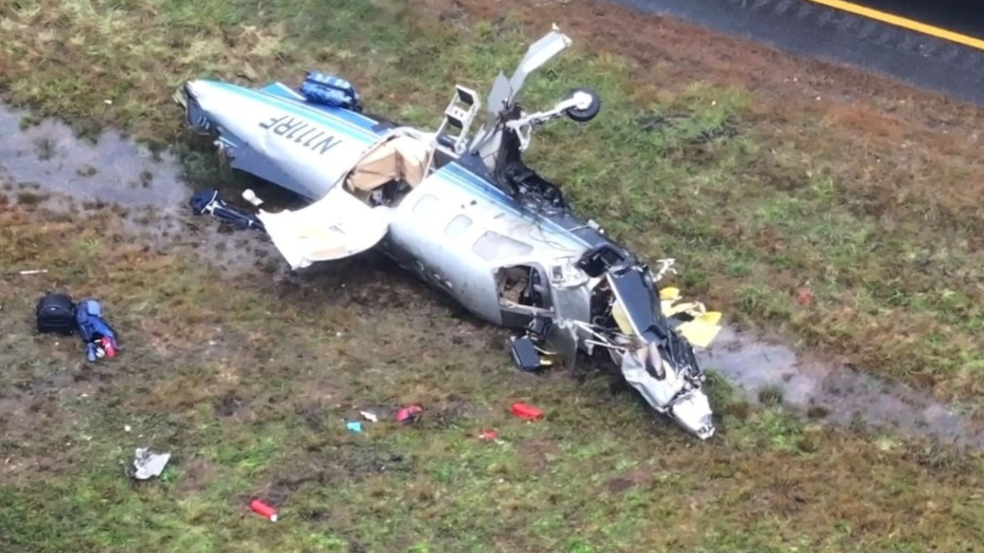 Jak zauważyła AP, na nagraniach wideo wykonanych z przejeżdżających pojazdów widać kłęby czarnego dymu unoszące się nad autostradą z przewróconego na bok kadłuba samolotu. Odłamki leżały porozrzucane na pasie zieleni przy autostradzie i w pobliskim lesie.