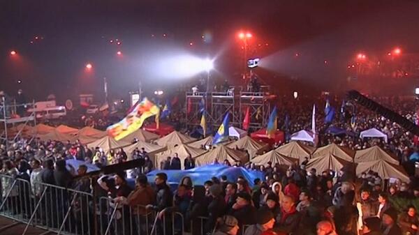 Uczestnicy akcji na Majdanie apelują przez sieci społecznościowe, by ludzie przyłączali się do protestów, aby bronić znajdujących się na placu studentów. Ze sceny płyną ostrzeżenia o możliwych prowokacjach wobec uczestników demonstracji.