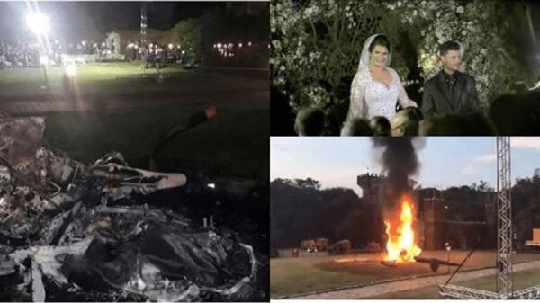 Sytuacja miała miejsce w sobotnie popołudnie w mieście Vinhedo. Kobieta postanowiła hucznie zjawić się na własnym weselu, wykorzystując do tego helikopter. Podczas lądowania, maszyna uderzyła w wieżę zamkową, zakręciła się i z impetem spadła na ziemię.
