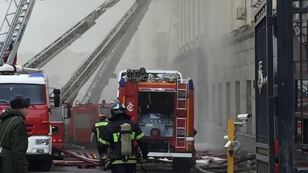 Feuer mitten in #Moskau, im HQ des Verteidigungsministeriums. Dichte Rauchschwaden, immer mehr Feuerwehrleute. pic.twitter.com/UEe3473Eff