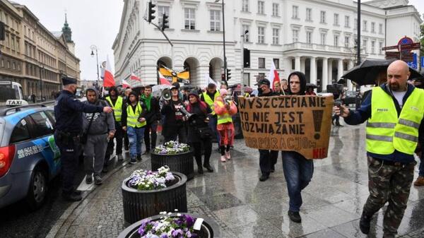 Uczestnicy demonstracji, których było około stu, oświadczyli, że ograniczenia wprowadzane z powodu pandemii nie mają nic wspólnego z chronieniem ludności, a są wygodnym dla urzędników ograniczaniem praw obywateli. Żądali wycofania systemu kodów elektronicznych, które potwierdzają szczepienie bądź negatywny wynik testów na koronawirusa.