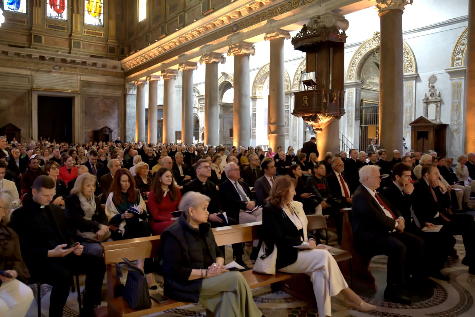 Na widowni obecni byli ponadto przedstawiciele środowisk akademickich, kościelnych i kulturalnych w Rzymie i Watykanie, a także Polonia i studenci.