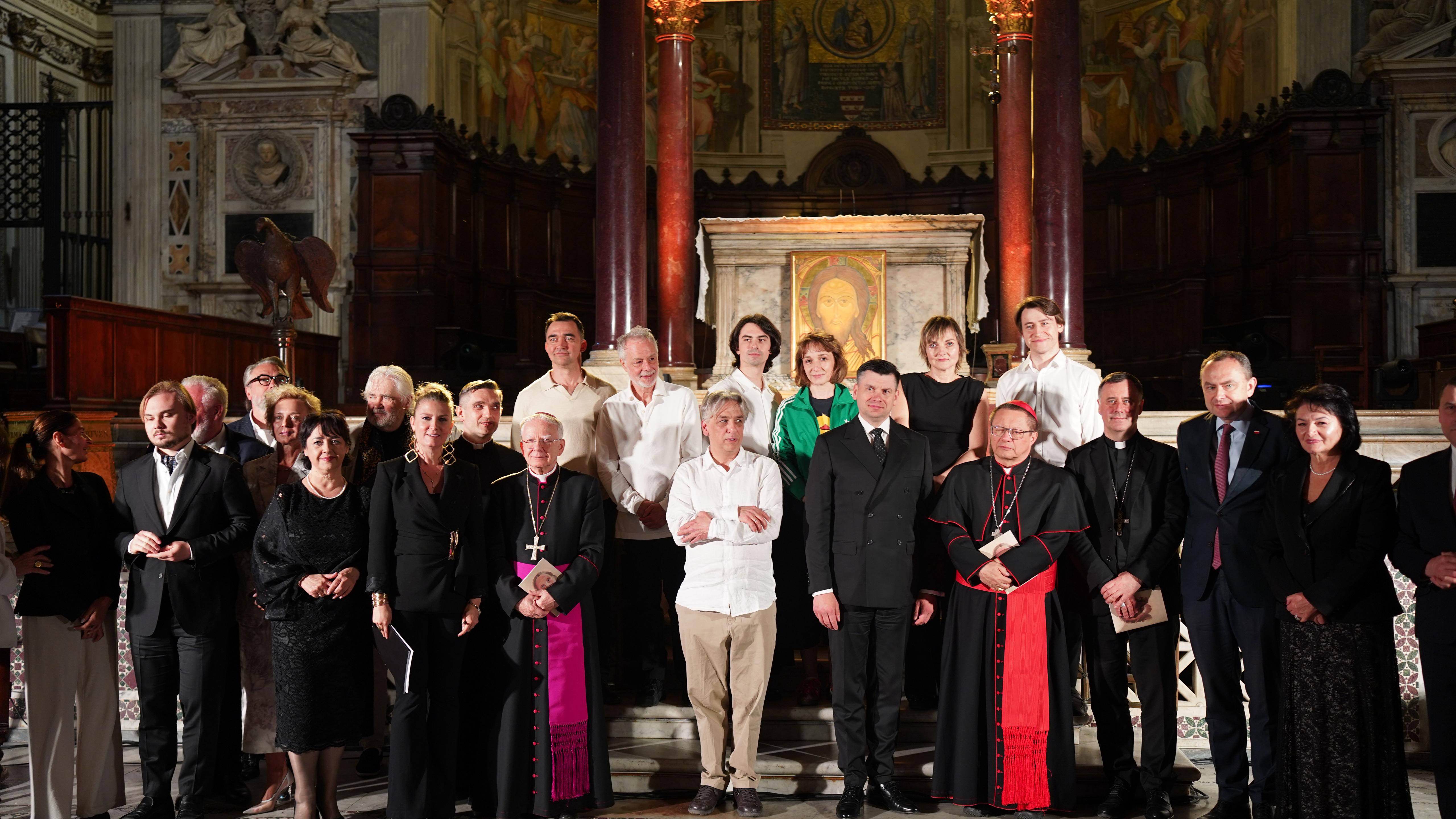 Na scenie wystąpili polscy i włoscy artyści: Ewa Konstancja Bułhak, Lidia Sadowa, Pierluigi Cuomo, Damian Pelc i Marcin Przybylski. Poemat zaprezentowano w trzech językach – polskim, włoskim i angielskim – co podkreśliło jego uniwersalny charakter i otwartość na odbiorców z różnych kultur. Całość dopełniła oprawa muzyczna, obejmująca utwory Giovanni Pierluigi da Palestrina, muzykę barokową, kompozycje związane z Kaplicą Sykstyńską oraz dzieła Giuseppe Verdiego, w wykonaniu wybitnego organisty Adama Tańskiego.
