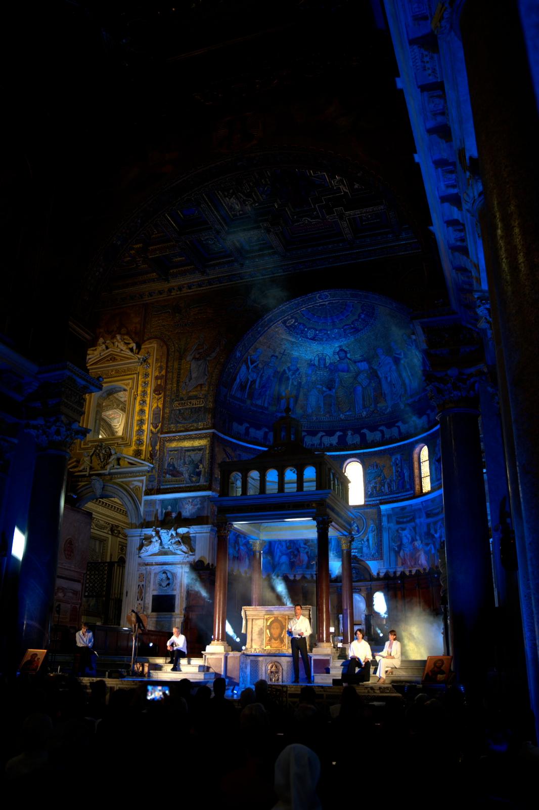Jan Paweł II – papież, filozof, teolog i poeta – w końcowym okresie życia sięgnął po poezję jako formę najpełniejszego wyrazu. Spektakl „Jan Paweł II. Tryptyk rzymski: Medytacje”, zaprezentowany w Bazylice Najświętszej Marii Panny na Zatybrzu w Rzymie, nie był klasyczną inscenizacją ostatniego poematu Papieża, lecz swoistą wędrówką wzdłuż strumienia ku źródłu – symbolowi poszukiwania początku, sensu i prawdy o człowieku.