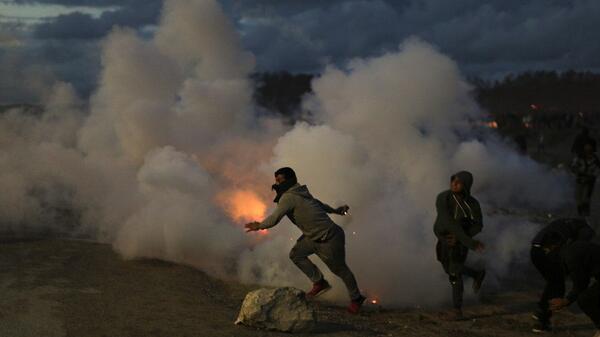 French police fire #teargas at #Calais migrants pic.twitter.com/20WMbg50Ze