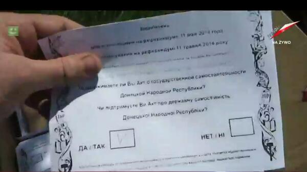 Jak pisaliśmy wczesniej, wynik ponad 89 proc. został z góry założony. Służba Bezpieczeństwa Ukrainy (SBU) opublikowała rozmowę telefoniczną między szefem skrajnie nacjonalistycznego ruchu Rosyjska Jedność Aleksandrem Barkaszowem a przywódcą organizacji Prawosławny Donbas Dmitrijem Bojcowem, w trakcie której ten ostatni mówi, że w związku z nasileniem operacji zbrojnej przeciwko rosyjskim separatystom, przeprowadzenie referendum jest niemożliwe.
