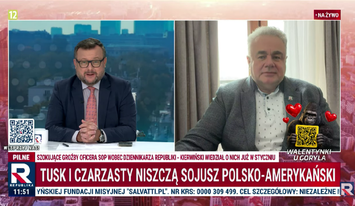 WAŻNEWspieraj Telewizję Republika! Przekaż 1,5 procent podatku za pośrednictwem Pallotyńskiej Fundacji Misyjnej "Salvatti.pl". Nr KRS: 0000 309 499. Cel szczegółowy: Niezależne Media SWS
