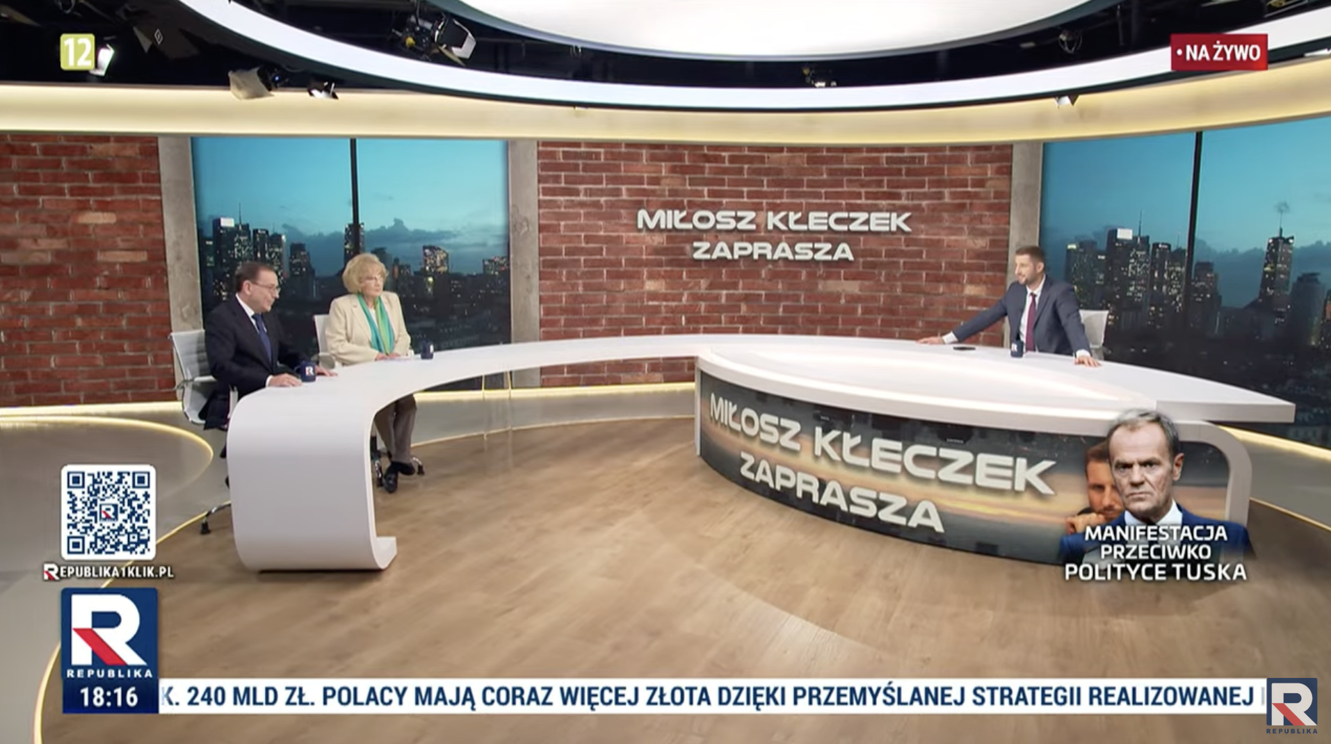 Miłosz Kłeczek rozpoczął program, odnosząc się do wtargnięcia ministra sprawiedliwości Waldemara Żurka do Sądu Najwyższego. — To absurdalna sytuacja, kiedy władza wykonawcza wchodzi ze swoimi brudnymi butami i próbuje przejmować kompetencje władzy sądowniczej — zauważył prowadzący.