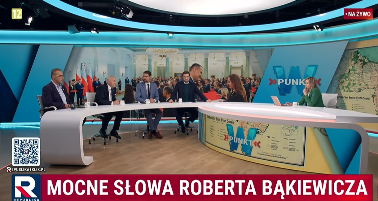 Prokuratura zajmuje się sprawą Roberta Bąkiewicza, który wystąpił na sobotnim wiecu Prawa i Sprawiedliwości. Mówił między innymi, że my Polacy, nie możemy nie pójść na Malbork, musimy zwyciężyć i wygrać Polskę. Dodał, że dzisiaj wrogiem jest nie tylko Rosja, ale także imperialne Niemcy, które odbudowują potęgę w Europie, kosztem polskiego narodu. Poprosił także o wspólny okrzyk: „Kosy na sztorc” Do wystąpienia odnieśli się politycy w studiu.