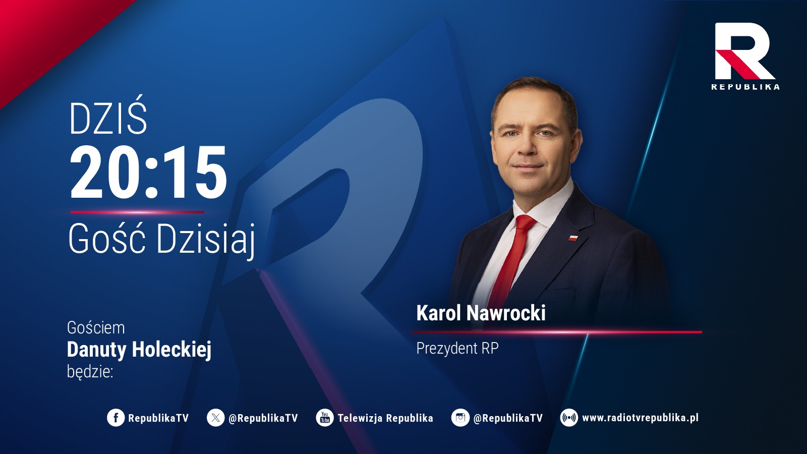 Dziś o godz. 20:15 w programie "Gość Dzisiaj" rozmowa z prezydentem Polski - Karolem Nawrockim. Tylko w TV Republika!
