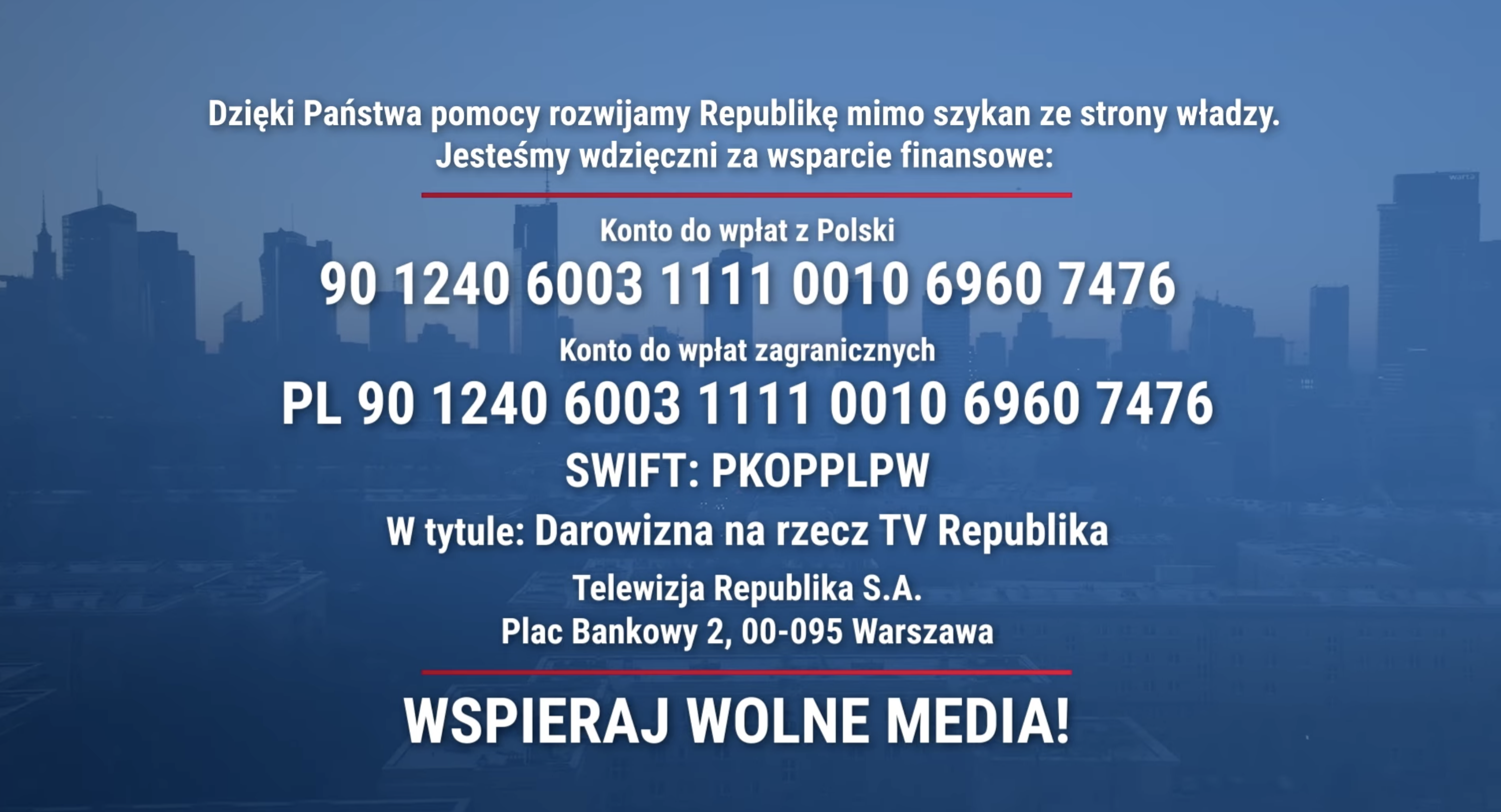Koalicja 13 grudnia nie kryje wrogości wobec Republiki – ich ataki stają się coraz bardziej bezpośrednie. Teraz ważne jest wsparcie finansowe: każdy gest pomaga bronić naszej wspólnoty przed represyjnym naciskiem władzy. W powyższym spocie pokazujemy, jak mogą Państwo to zrobić.