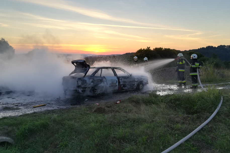 Kierowca nie mógł się wydostać z płonącego auta – o włos od tragedii