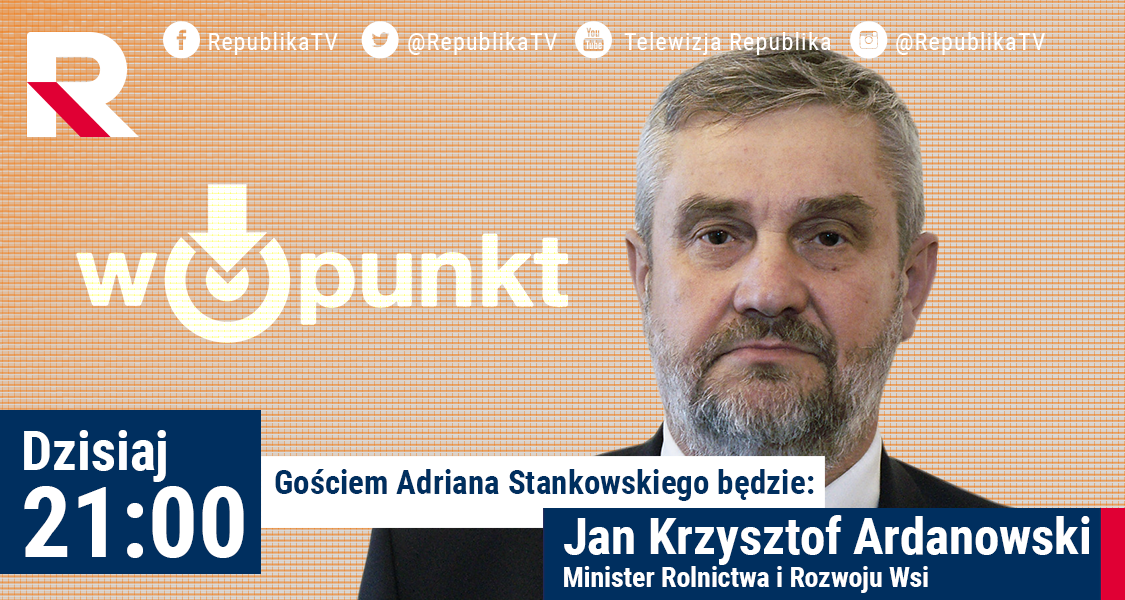 Już o 21:00 specjalnie w Tv Republika minister rolnictwa Jan Krzysztof Ardanowski