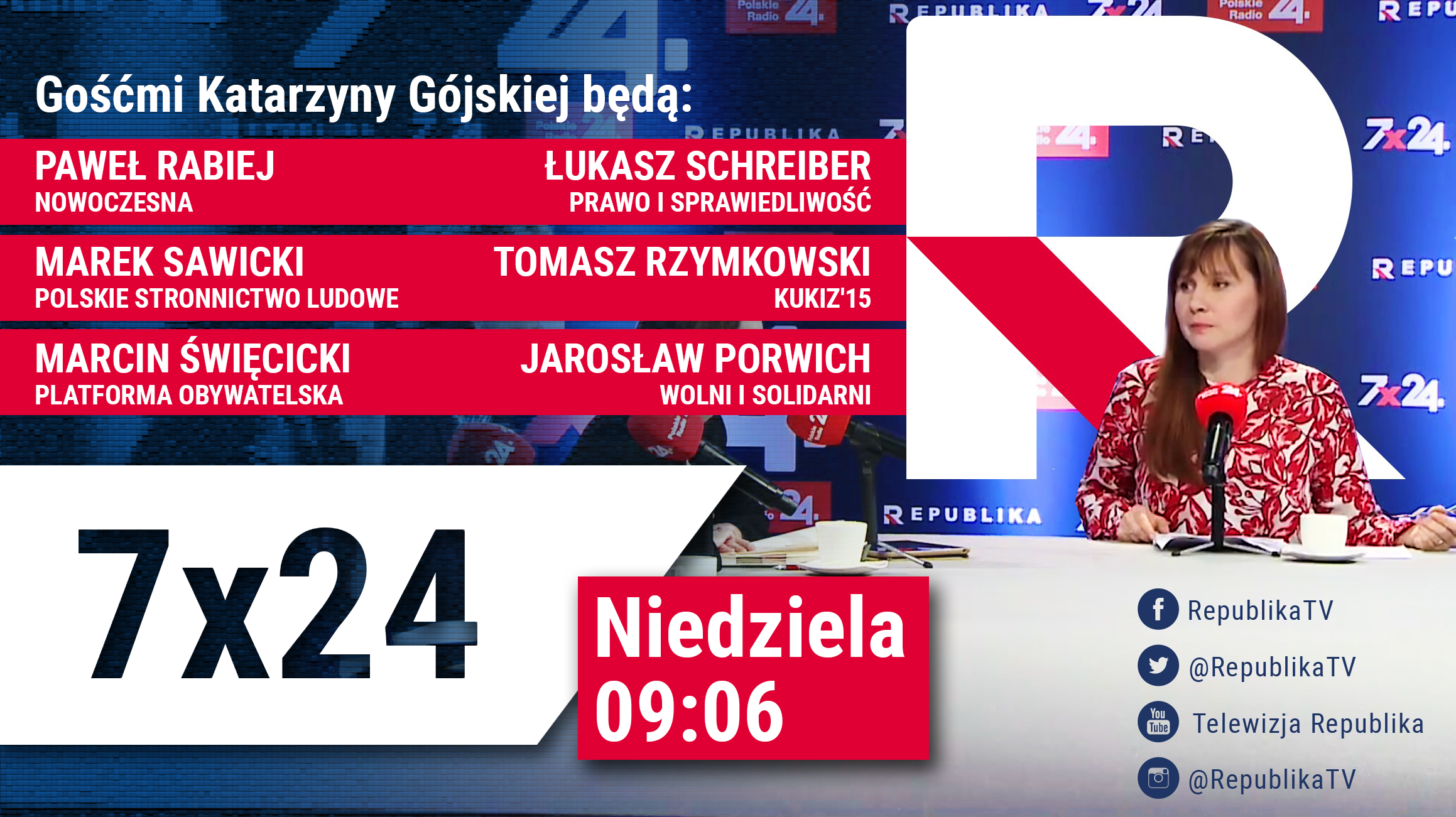 Radio RepublikaWe wtorek, 12 stycznia o godz. 6:30 gościem Poranka Radia Republika będzie Jacek Prusinowski, dziennikarz i publicysta, a o 7:10 rozmowa z Jackiem Saryuszem-Wolskim, byłym wiceprzewodniczącym Parlamentu Europejskiego