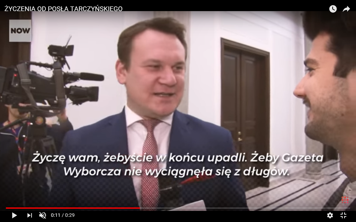 Dominik Tarczyński składa życzenia "Gazecie Wyborczej". To trzeba zobaczyć