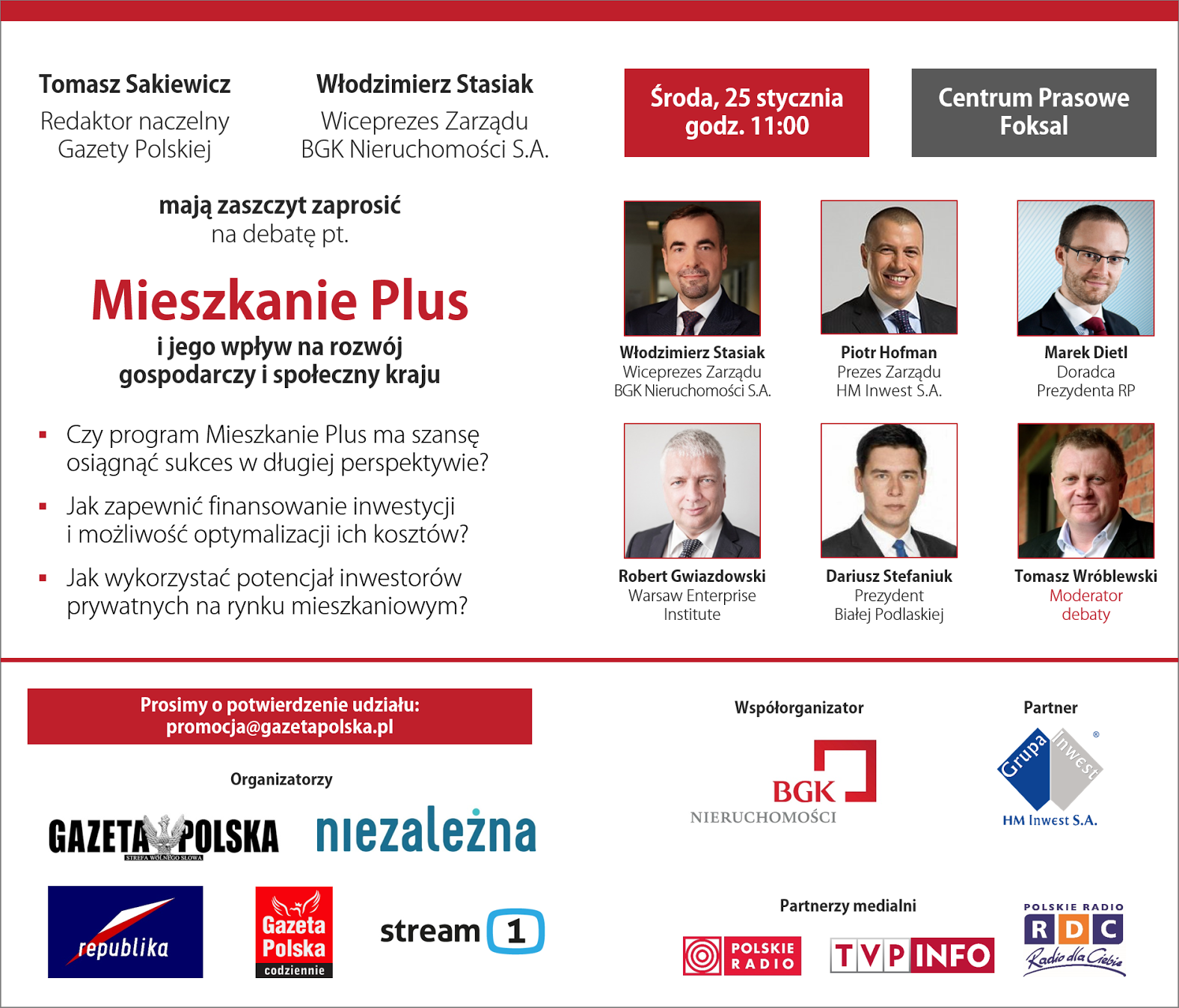 ZAPRASZAMY NA TRANSMISJĘ DEBATY O MIESZKANIU+. Środa, 25 stycznia godz. 11:00!