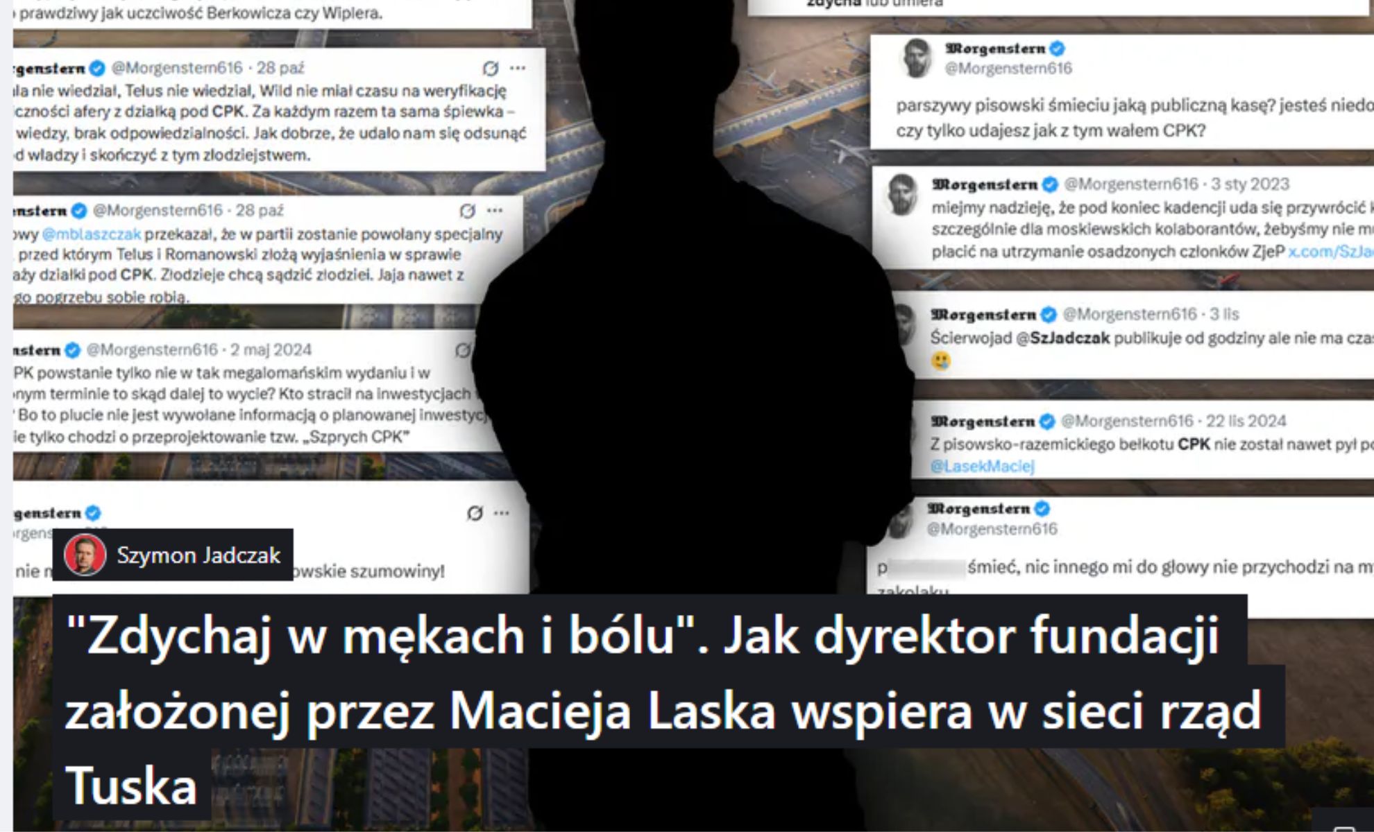 Życzył ludziom śmierci, obrażał, wyzywał, znieważał. Wiemy, kim jest hejter Morgenstern, dyrektor w fundacji Macieja Laska