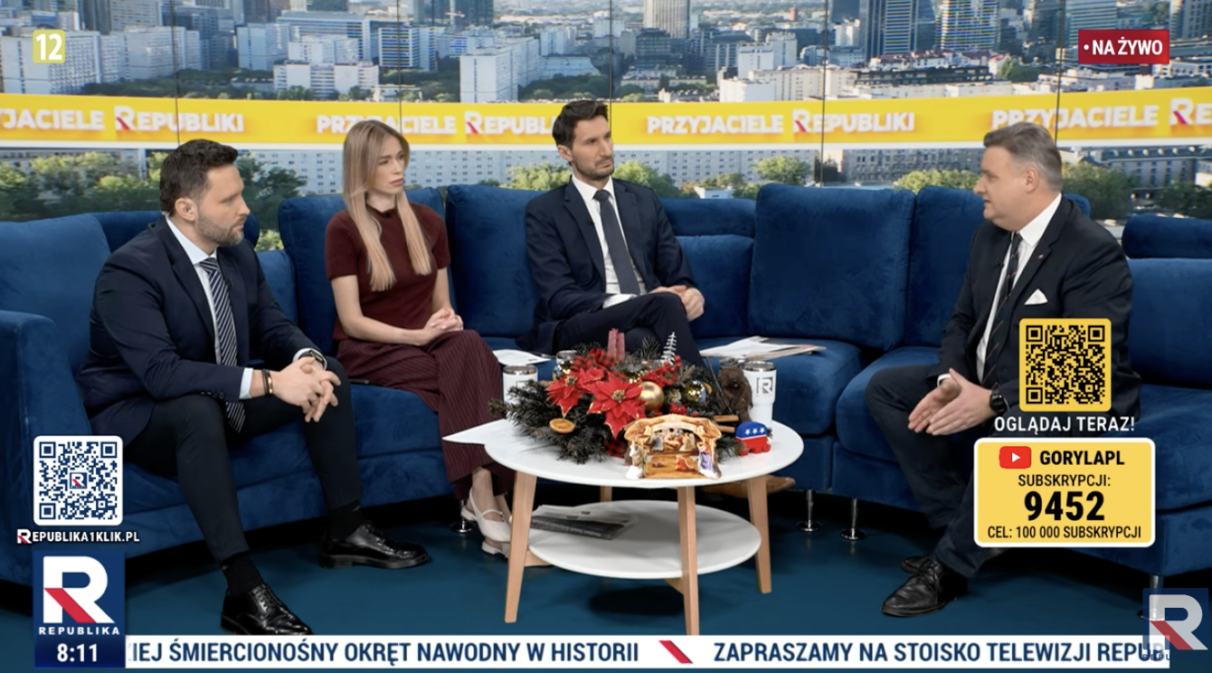 RepublikaRepublika zaprasza widzów na specjalny koncert kolęd z Kozłówki, z udziałem Prezydenta RP Karola Nawrockiego oraz Pierwszej Damy Marty Nawrockiej, Wigilia, godz. 20.00